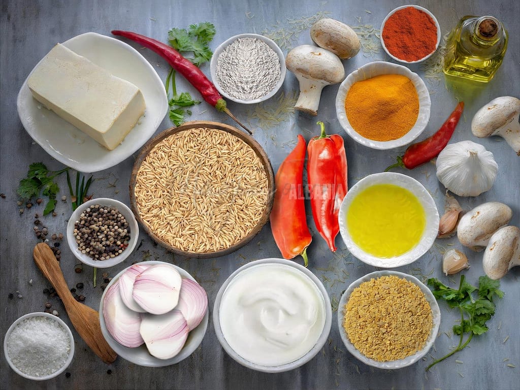 Provate l'essenza della cucina albanese con questa rivisitazione vegana del Tavë Kosi. Con un mix di riso integrale, tofu e un vivace assortimento di verdure, questa versione senza latticini mantiene la consistenza cremosa dell'originale.