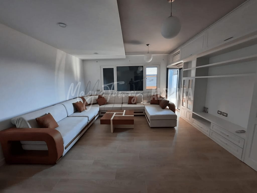 Offering a large 2-bedroom apartment for sale in Shkoder, spanning 140m2 on the 4th floor of a new building with elevator. The property features an open-plan living area, an ensuite master bedroom, and a balcony with a main street views. Available either furnished or vacant.